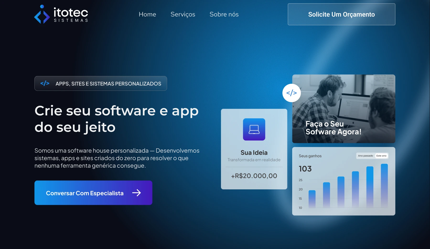 Web Designer especializado em ERP, SaaS e Startups. Crio interfaces e landing pages profissionais que aumentam a visibilidade e impulsionam as vendas do seu software.