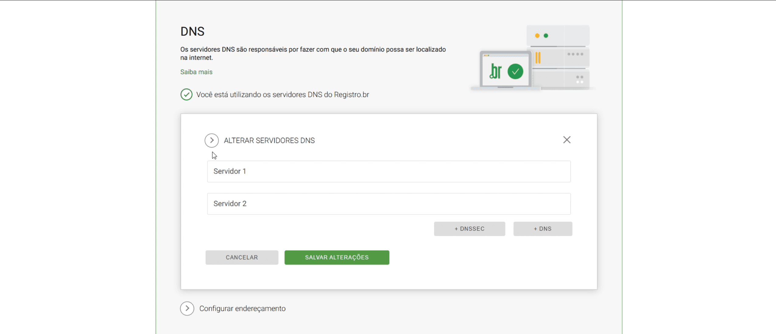 No campo DNS clique em "CONFIGURAR ENDEREÇAMENTO".