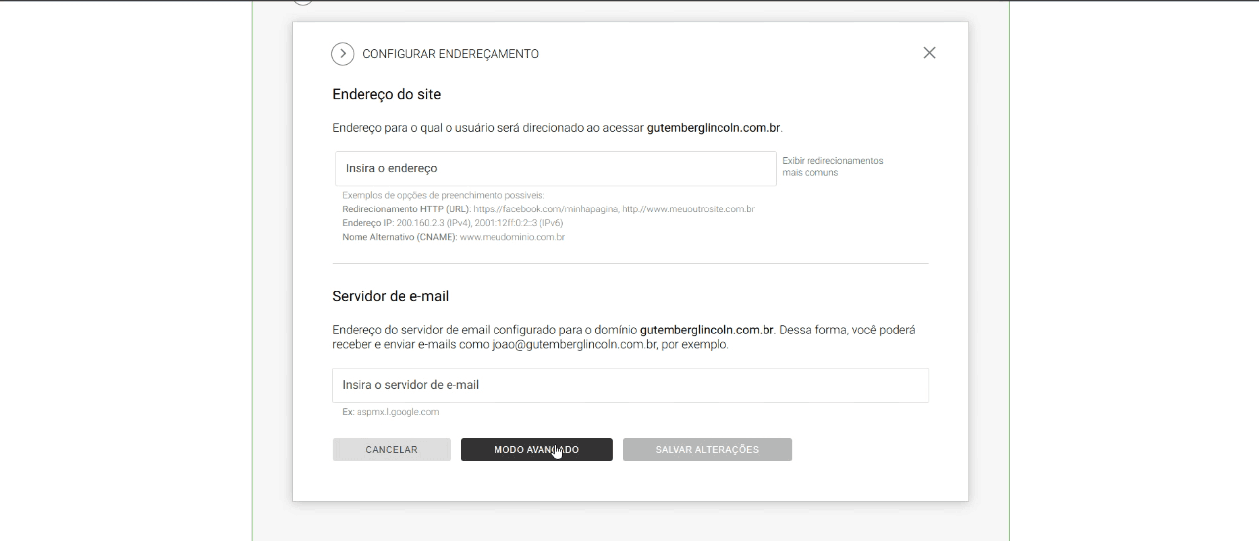 Mantenha os campos em branco e clique em "MODO AVANÇADO";