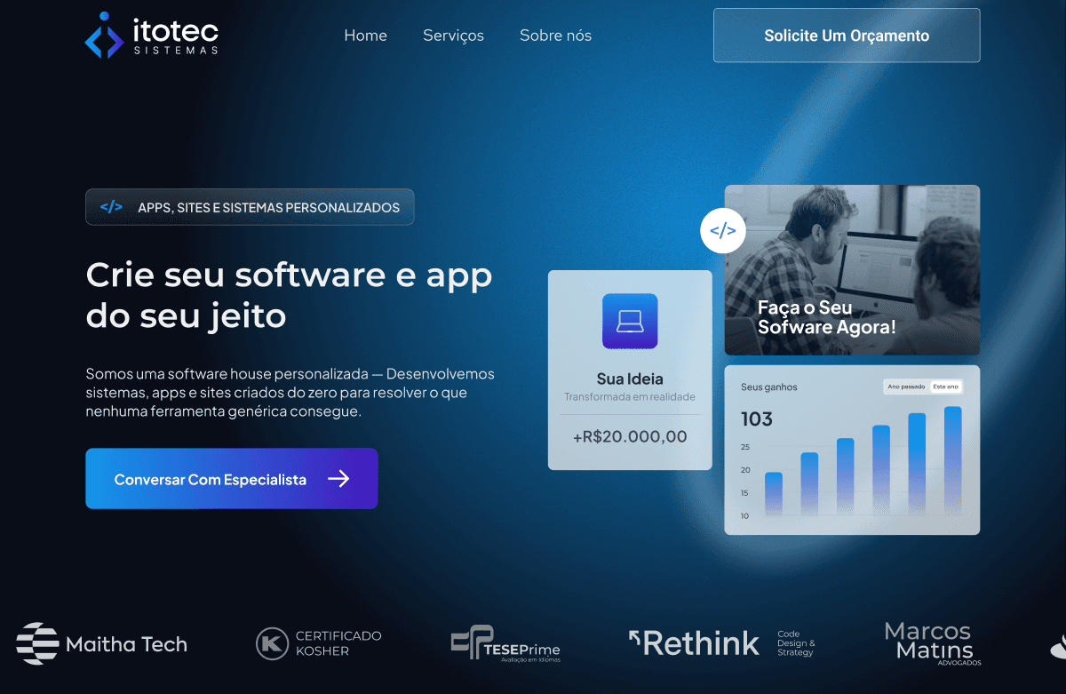 Tenha um design premium, moderno e clean para destacar o valor do seu software, Nossa metodologia combina inovação, inteligência artificial e insights estratégicos para garantir resultados reias.